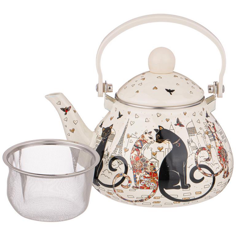 ЧАЙНИК 1,3л ЭМАЛИРОВАННЫЙ С ФИЛЬТРОМ ИЗ НЖС, "ПАРИЖСКИЕ КОТЫ" AGNESS 934-390