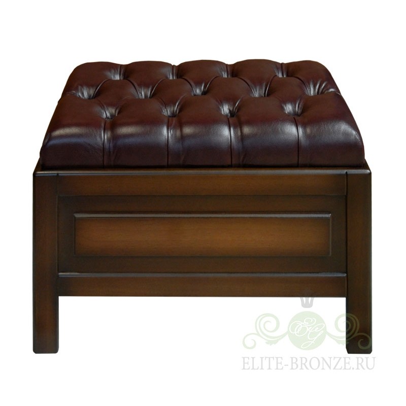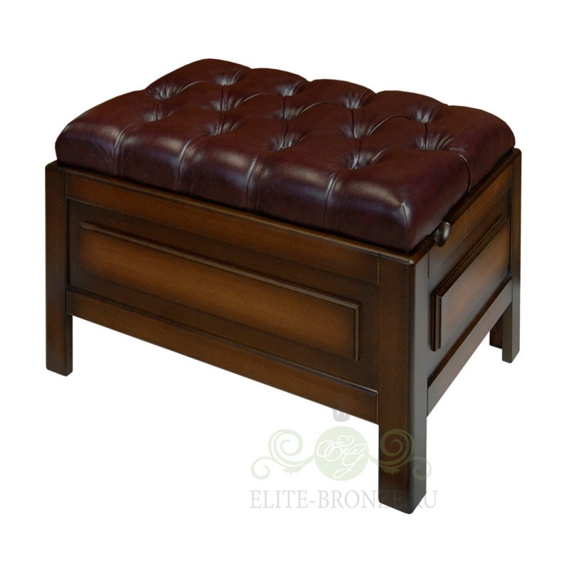 Банкетка-сундук ср.650 х 430 х 450 арт.EL 4117 цвет "Итальянский орех" / кожа бордо "Честер"