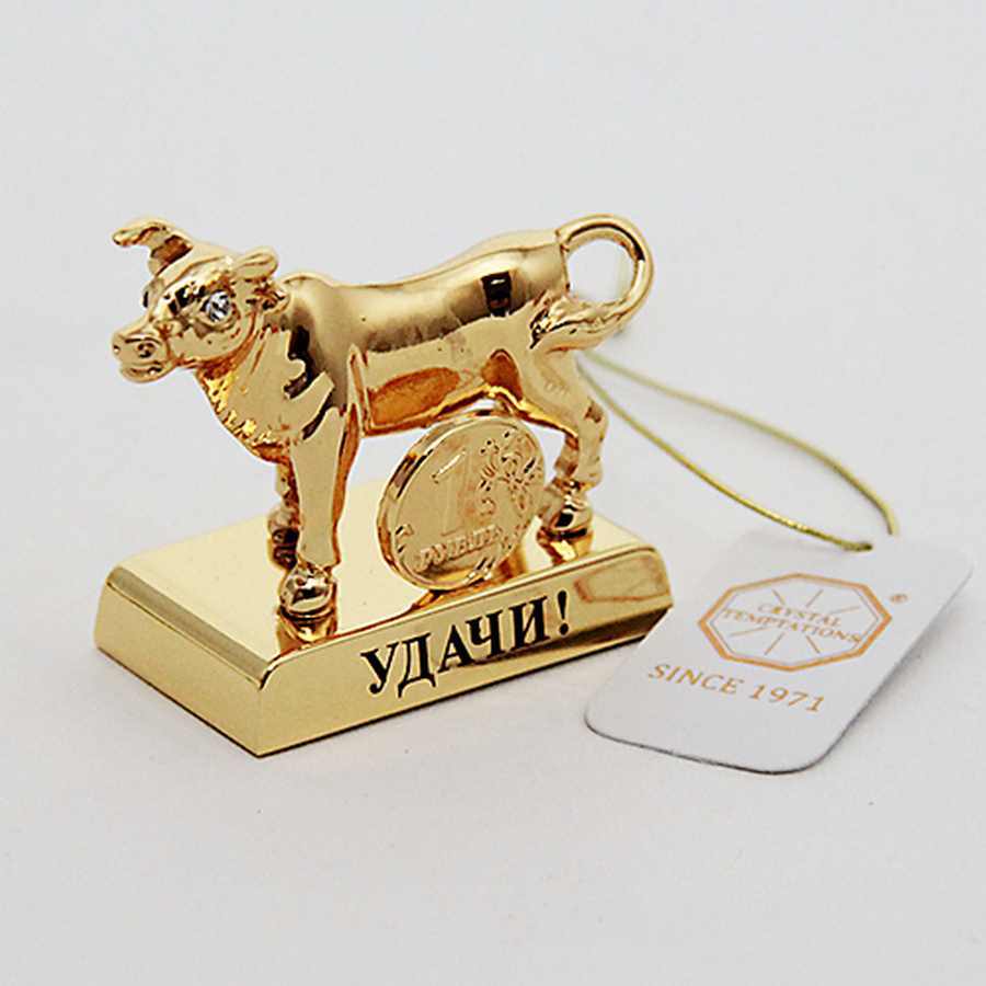 M-U-5535/LG Бык с монеткой СЧАСТЬЕ 5*3*4см, два хрусталика в глазах