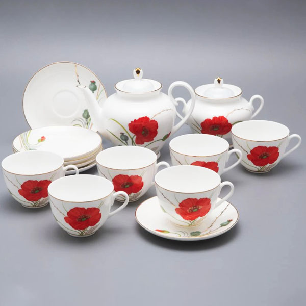 Чайный сервиз 6/14 ф-ма Весенняя 2 рис. Маки костян. Фарфор 81.34140.00.1 ИФЗ (ЛФЗ)