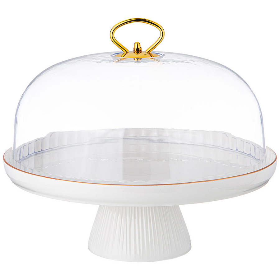 ТОРТОВНИЦА 28 см "HERBAL" НА НОЖКЕ С ПЛАСТИКОВОЙ КРЫШКОЙ белая 42-490