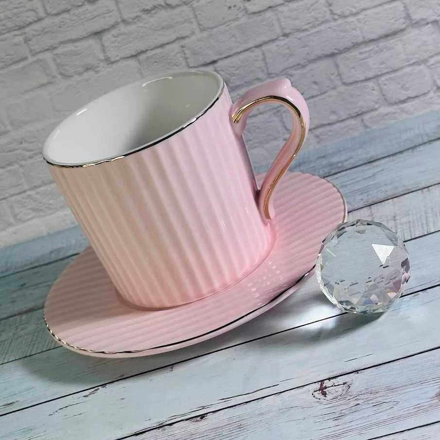 109-127/6 Кофейная пара 130 мл (розовая) (отводка золото) Фарфор Lenardi