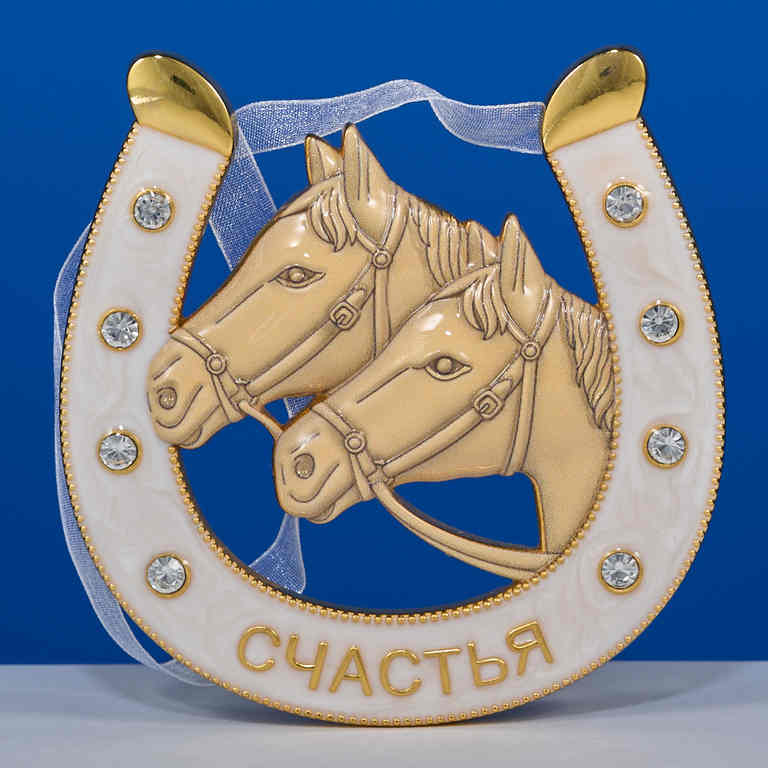 HG-20263 Подкова "Лошади" с эмалью и стразами, подвесная, 10х0,5х10,5 см.