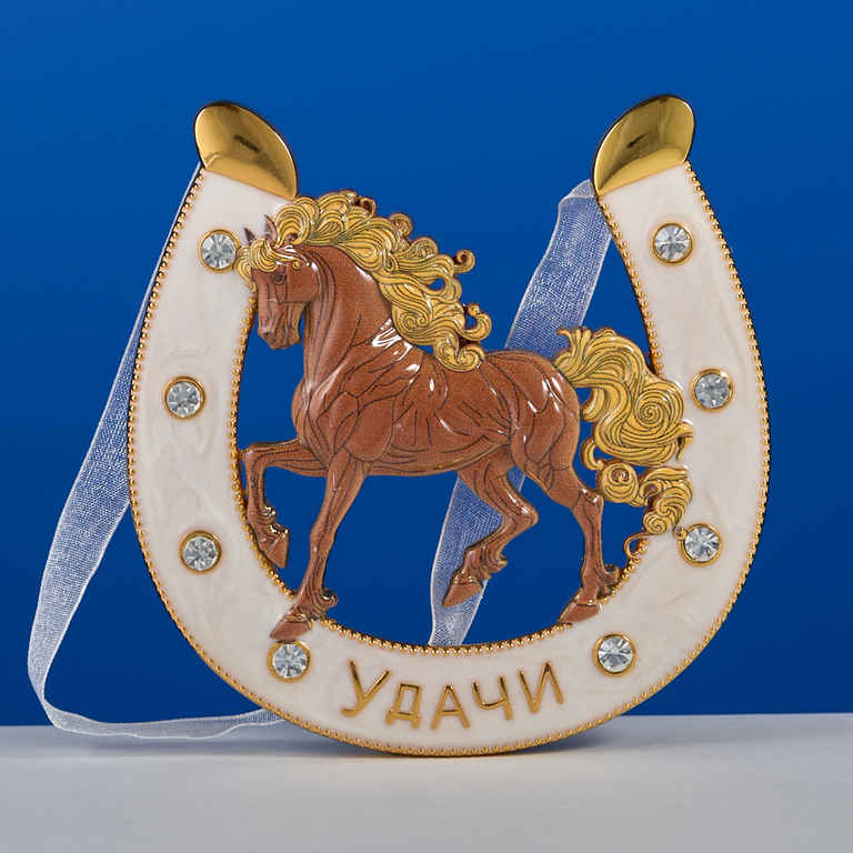 HG-20267 Подкова "Лошадь" с эмалью и стразами, подвесная, 10х0,5х10,5 см.