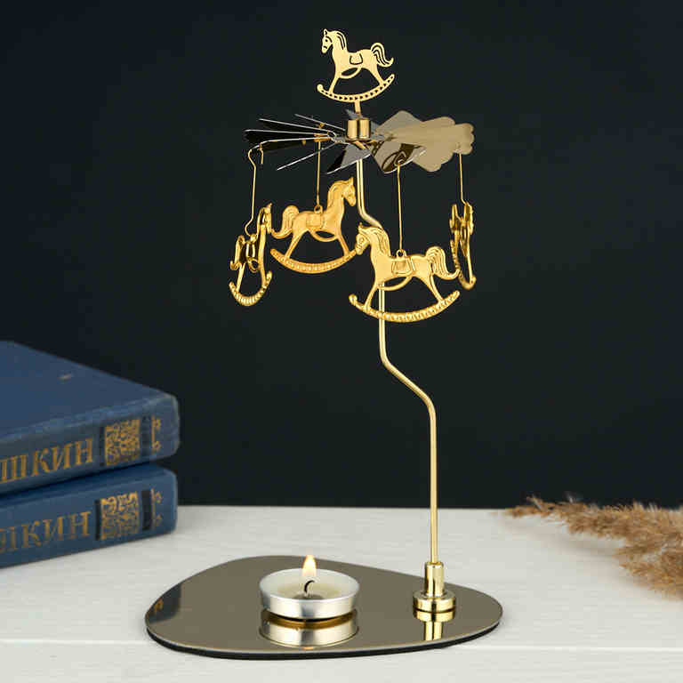M-YW-062122 Подсвечник "Карусель" вращающийся от свечи, 24K Gold Color Plated, 12,5х10,5х19 см