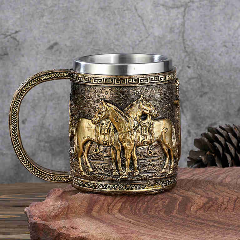 M-YW-11951 Кружка "Лошади", нержавеющая сталь/искусственный камень, 430 мл., 16х10х12 см.