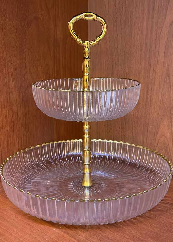 Этажерка(горка) два яруса 15см, 25 см отводка золото стекло Турция