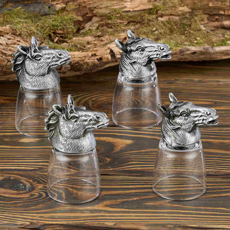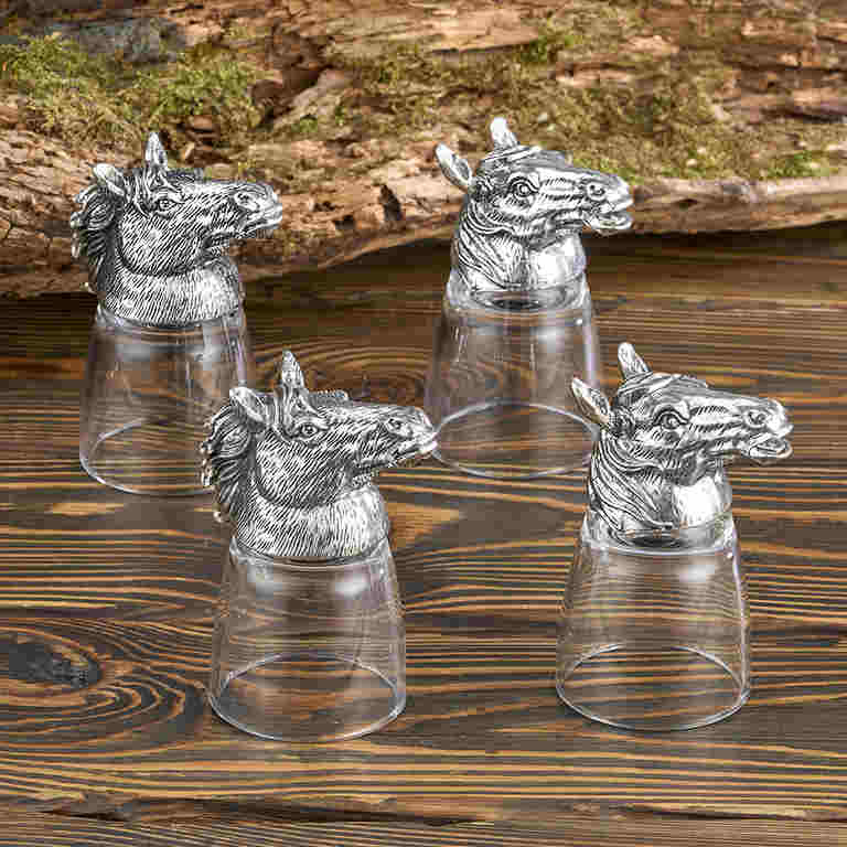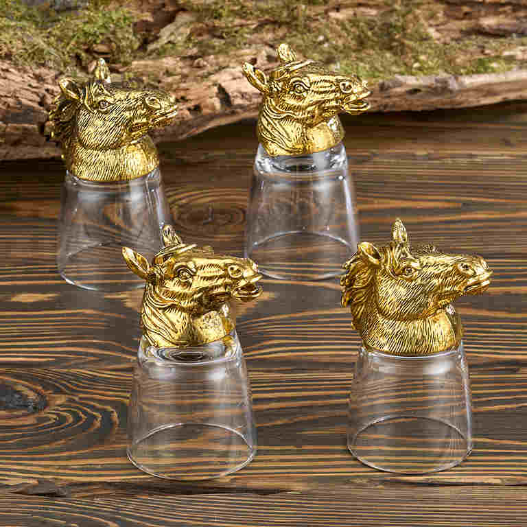 M-6645 Набор из 4-х стопок-переверт. "Лошади", (50мл/стопка) d=4.8см h=9см