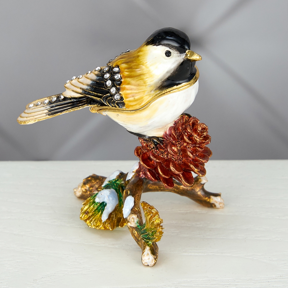 M-BP-14521 Шкатулка "Воробей на шишке" со стразами, 5*7*8см.