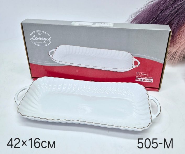 505-M Блюдо прямоугольное 37см (обводка золото) фарфор (Lemoges) Иран