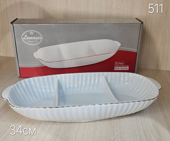 102-M Блюдо прямоугольное 32*16см (обводка золото) фарфор (Lemoges) Иран