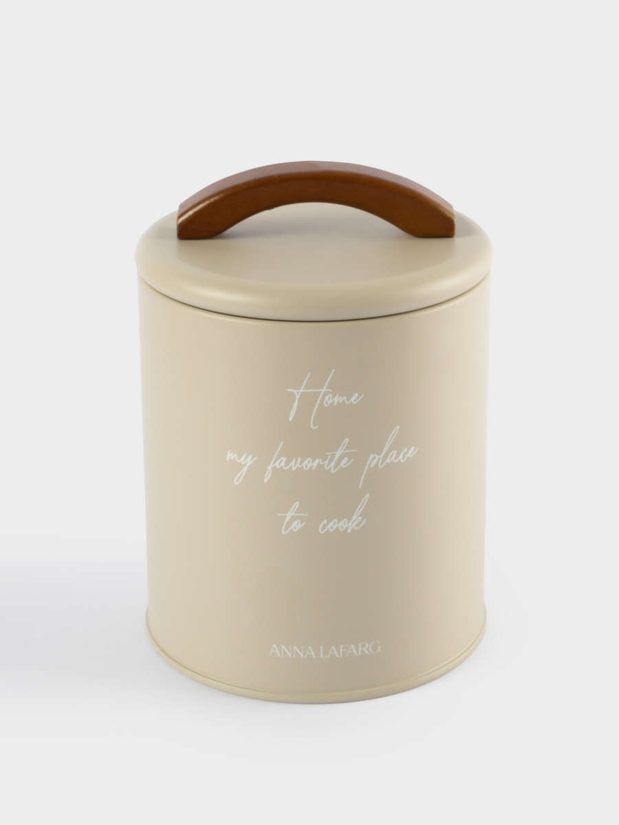 Банка для сыпучих продуктов, 1 л, металл/дерево, бежевая, Retro 63461_3703438