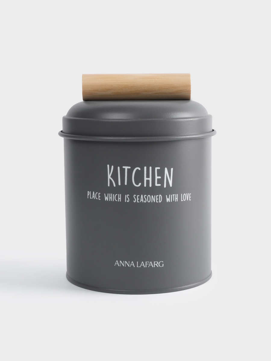 Банка для сыпучих продуктов, 1 л, металл/дерево, графитовая, Local 63441_3703439