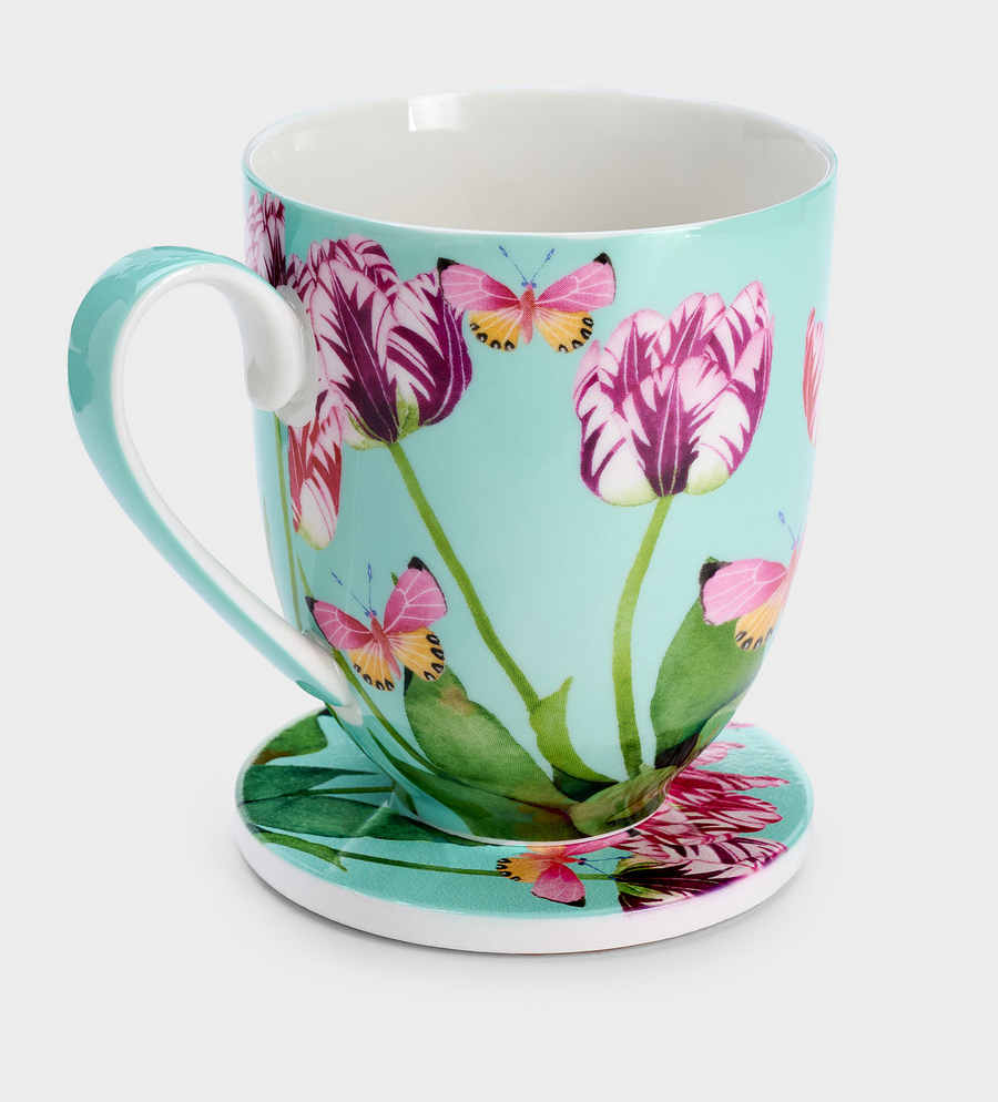 Кружка 400 мл с подставкой "Тюльпаны" в подар.упак. Фарфор Maxwell & Williams Австралия 62605