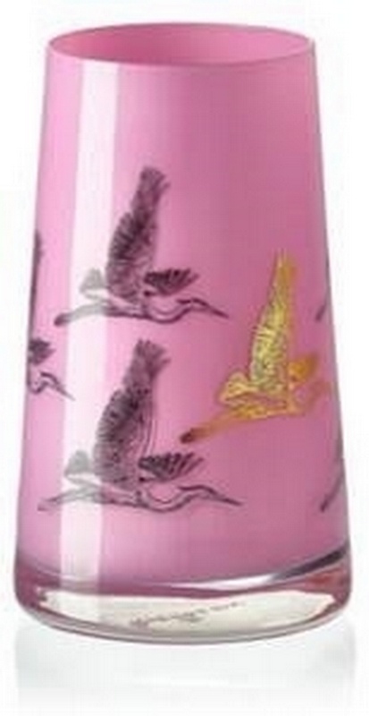 82530/120/S1878 Ваза 120 мм , декор "Цапли",розовый фон Богемия Чехия 76211
