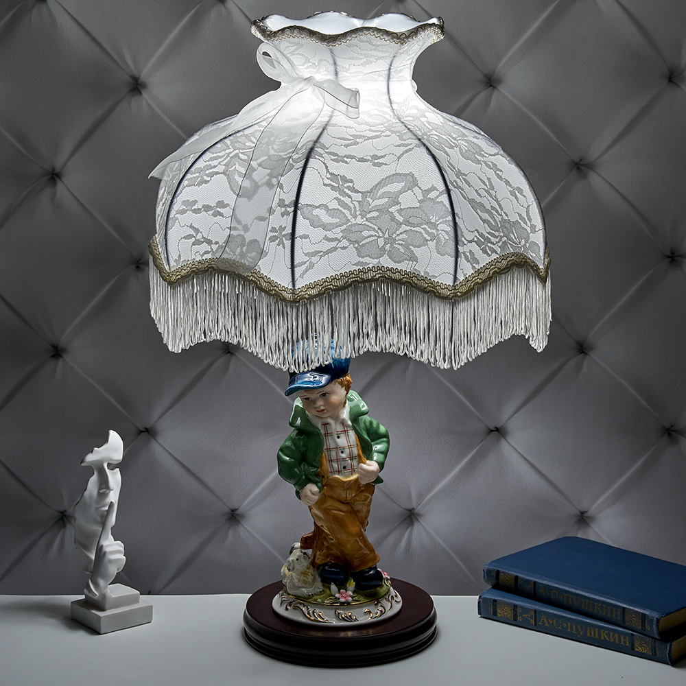 M-QP-81225L Лампа с фарфоровой статуэткой "Мальчик с собачкой" 18*16*60 см