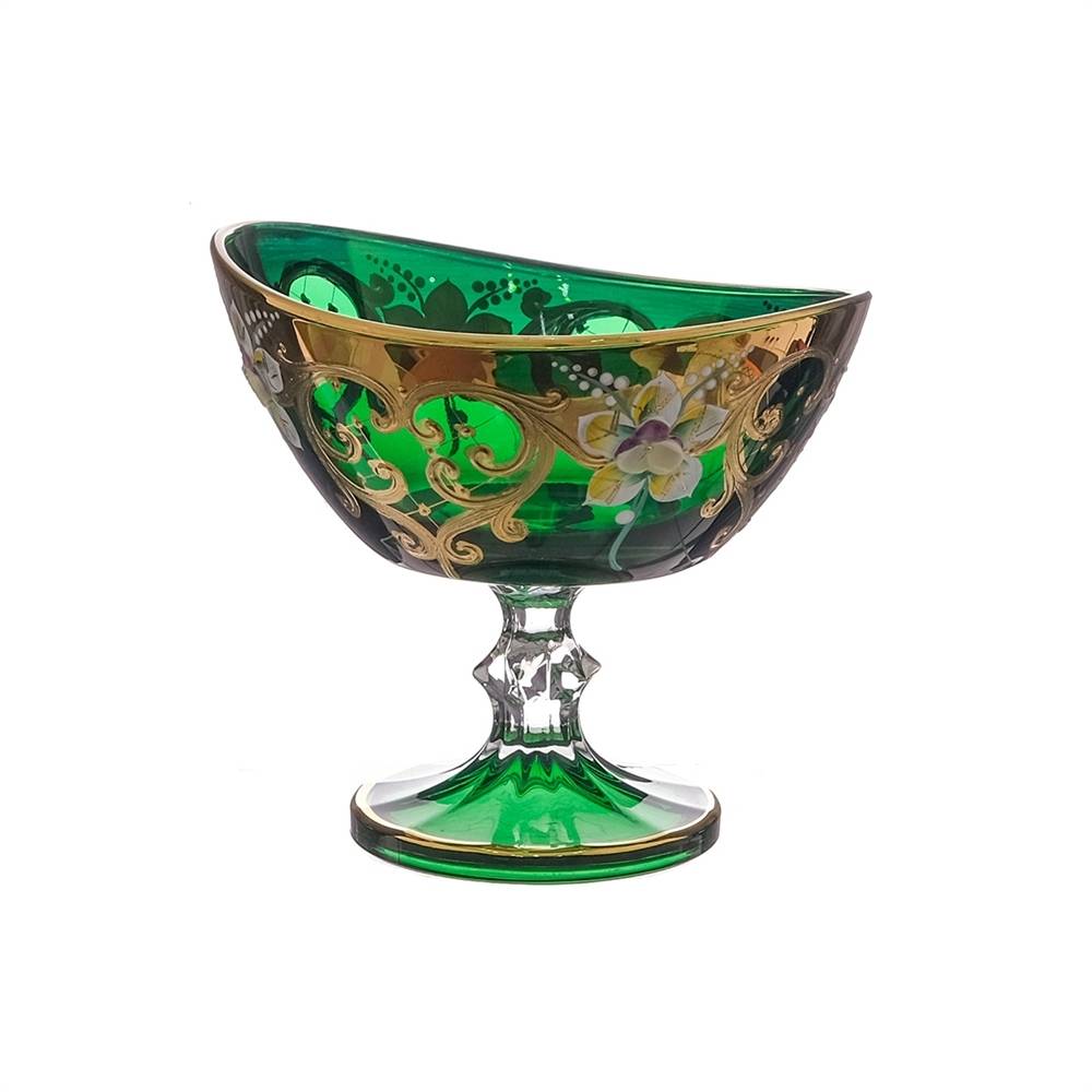 Конфетница 20см Зеленая (лепка) Star Crystal, 6888/20 Богемия Чехия 30479