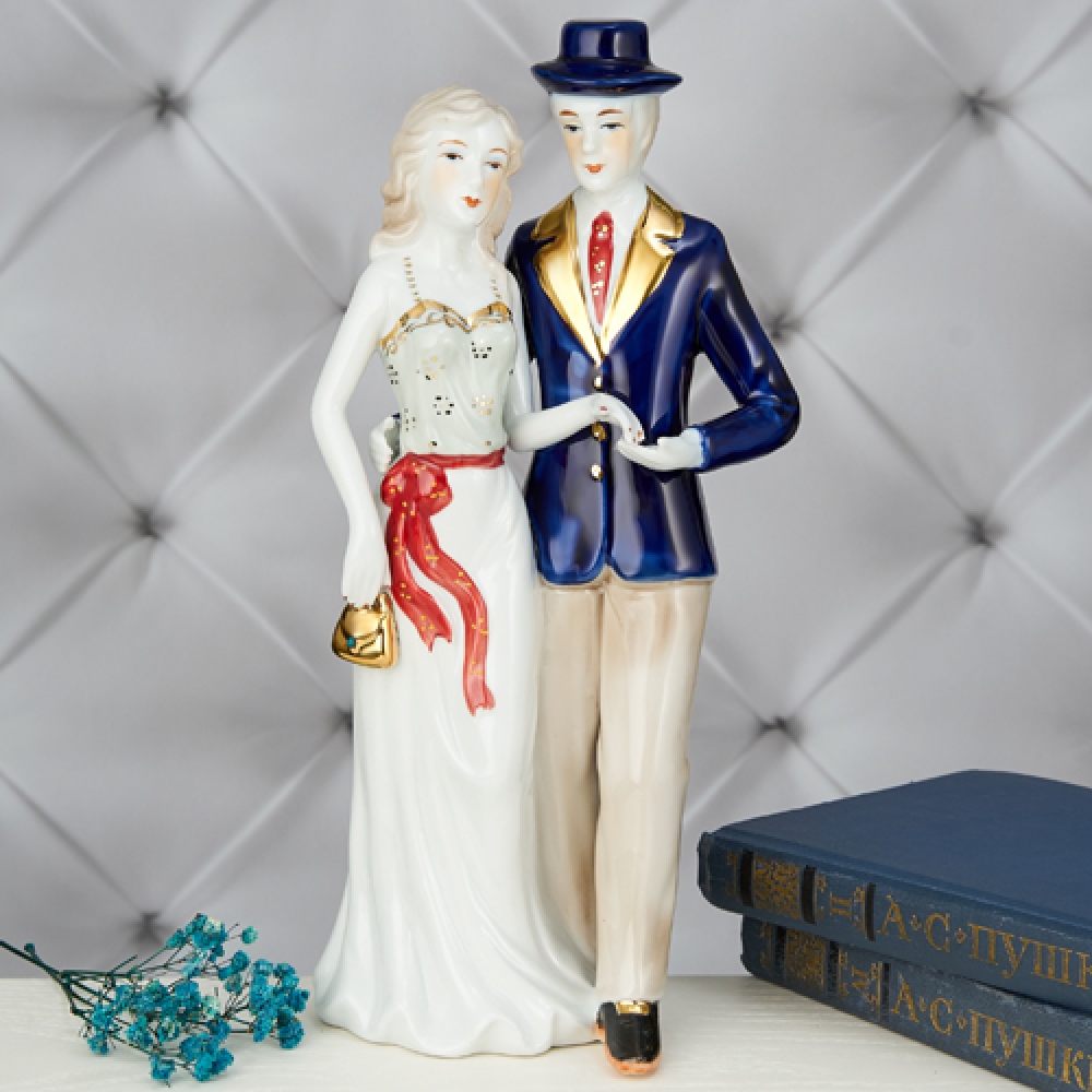 YW-00954/3 Фарфоровая статуэтка "Танцующая пара", 13*8*28см.