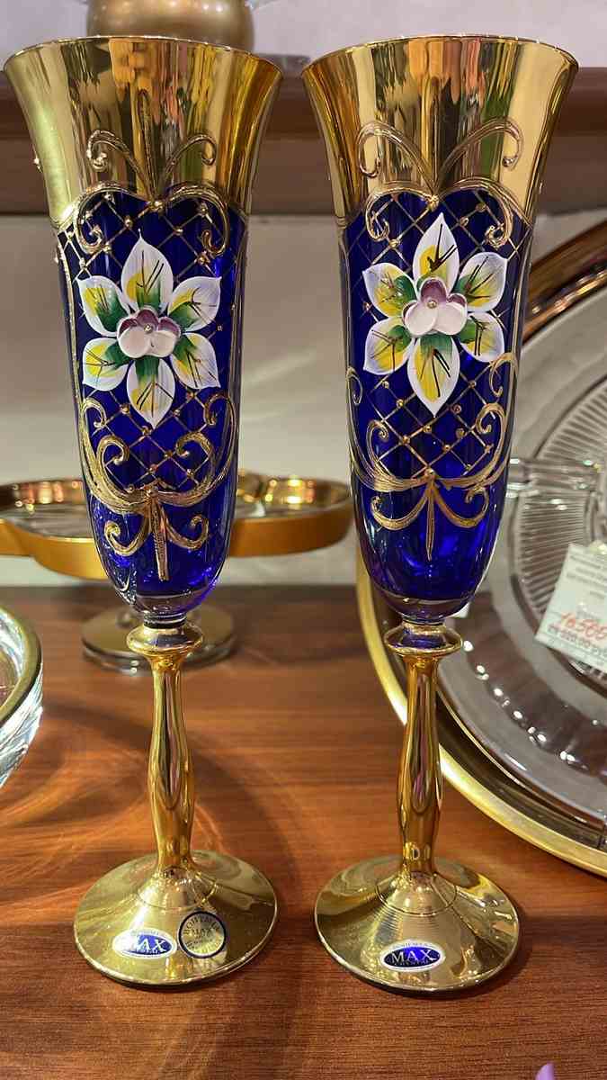 40600/Jitka/190 Анжела фужер для шампанского 190мл.(2шт) Лепка синяя Богемия Чехия _9709498