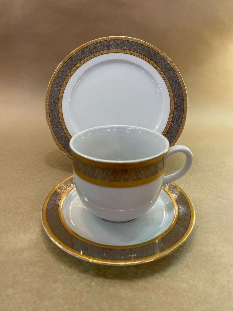 84007 Опал чайная пара 270 мл + тарелка 19 см "Широкий кант платина, золото" Чехия