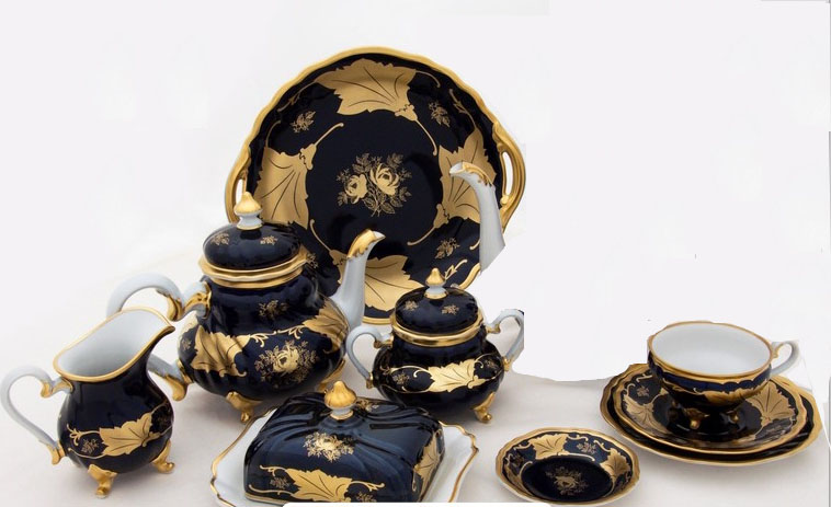 Серия «Катарина», включающая в себя потрясающую коллекцию «Синий Кленовый Лист 819», является результатом кропотливой работы лучших мастеров компании «Weimar». Этот ценный фарфор в европейском стиле "Синий Кленовый Лист 819" напоминает стили, в которых были убраны лучшие дворцы знаменитых герцогов. В нем утонченно и эффектно сочетаются высокий вкус, элегантность и вечная красота.Декор "Синий Кленовый Лист 819" за последние несколько лет стал весьма популярен в России. Дворцовый декор «Катарина» - это фирменный знак мануфактуры «Weimar Porzellan». Барочные линии рельефных форм в симбиозе с благороднейшим золотом и кобальтовыми аппликациями придают дворцовому декору несравненную праздничную и эксклюзивную нотку.