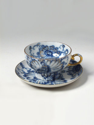 Твердый фарфор, подглазурная деколь, роспись золотом.