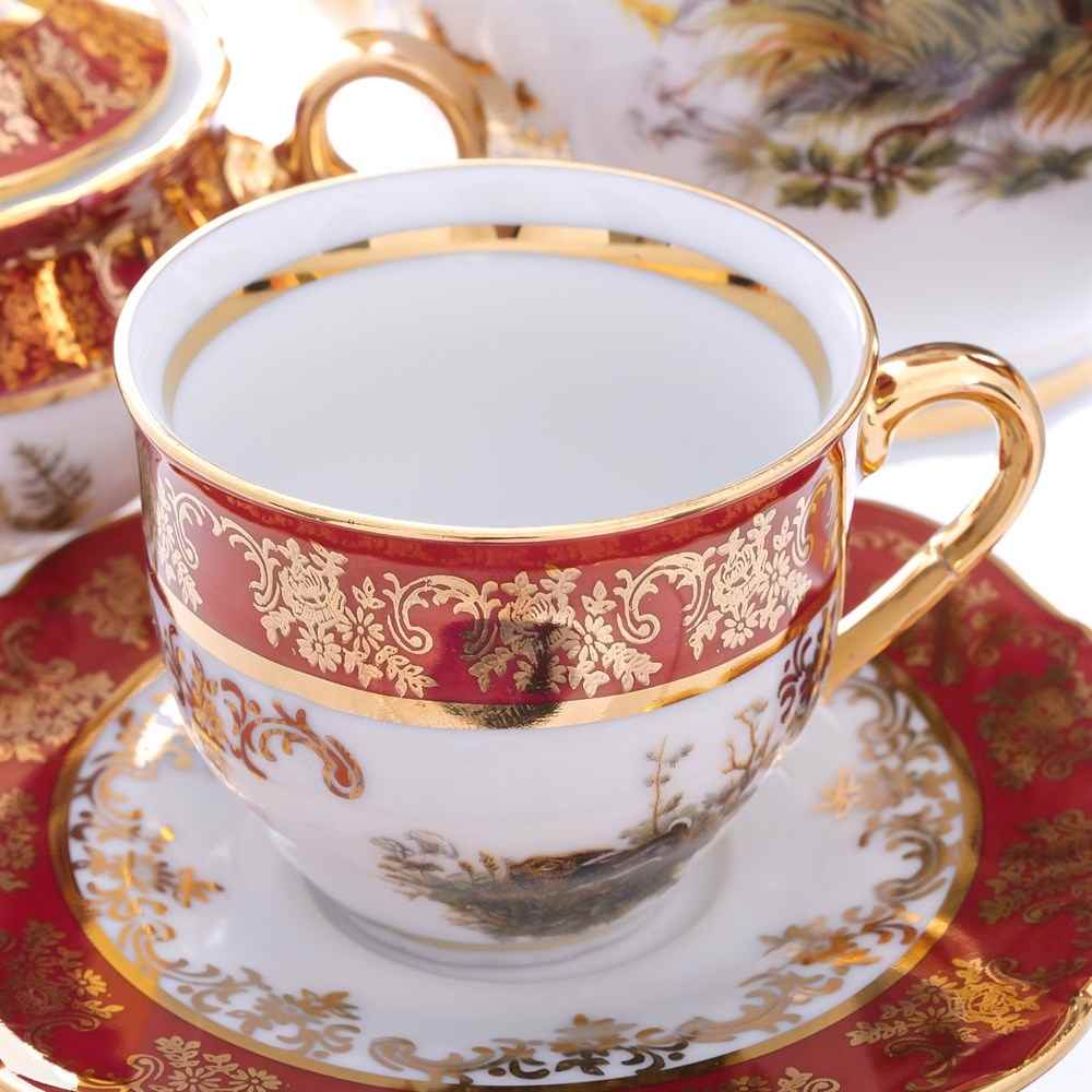 Охота красная Кофейный сервиз мокко 6/15 пред. Queen's Crown Чехия 59023