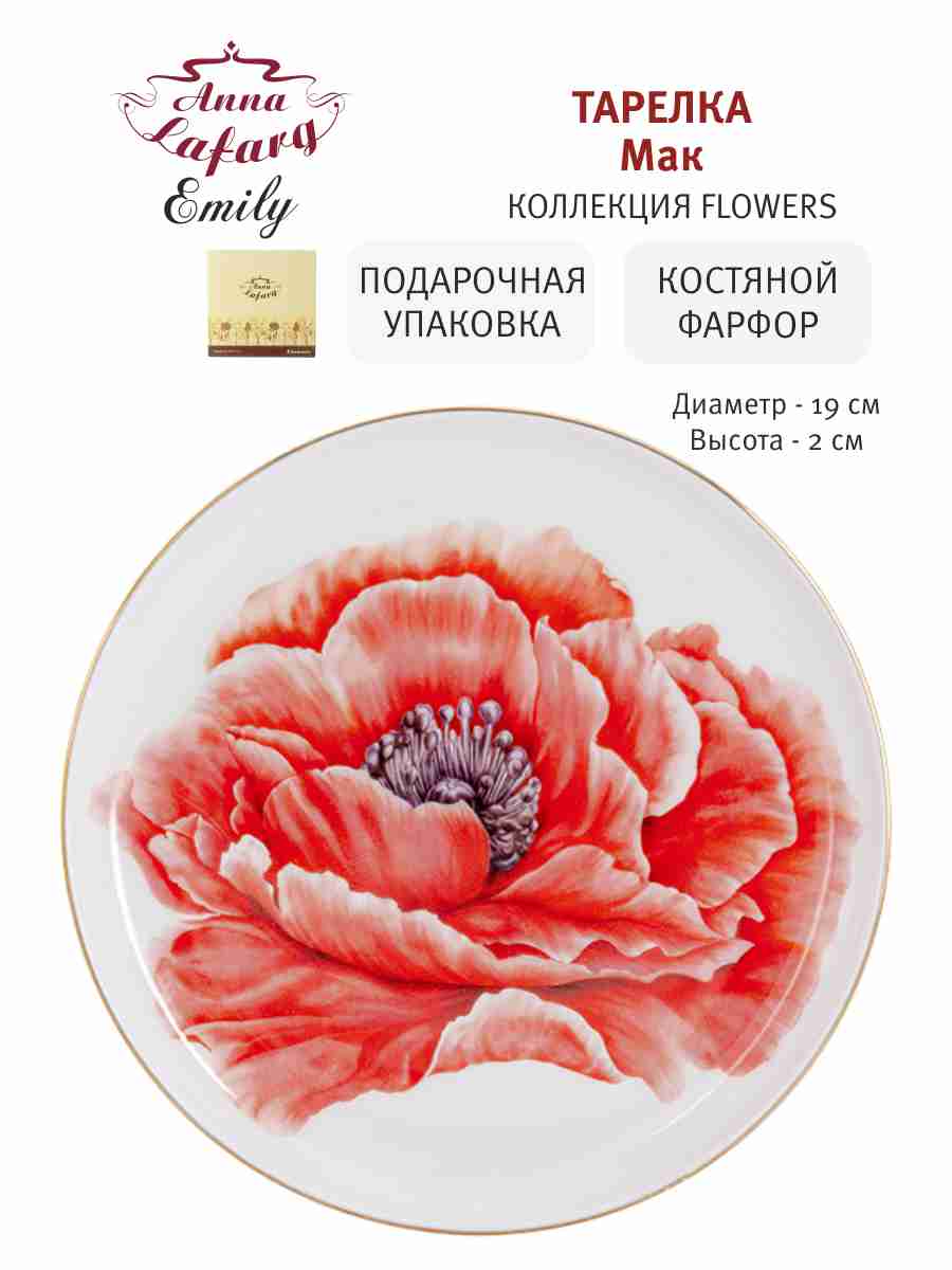 Тарелка 19см "Мак" костяной фарфор в подар. упак.Anna Lafarg Emily. 60492