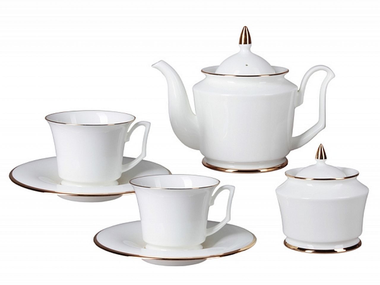 Сервиз включает в себя 14 предметов: чайник, сахарница, 6 чашек (210 мл), 6 блюдец.