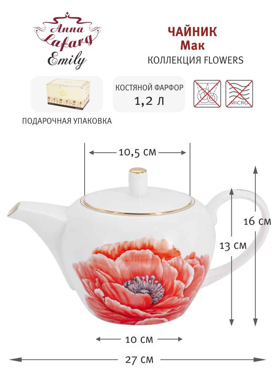 ---Чайник 1.2л "Мак" Flowers в подар.упак. костяной фарфор Anna Lafarg Emily 60489
