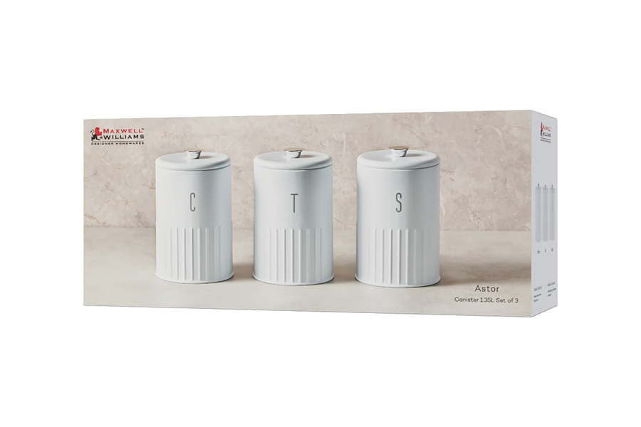 ---Набор: 3 банки д/сыпучих продуктов h17см,1.35л (белый) "Astor" в подар.упак. Maxwell & Williams Авс