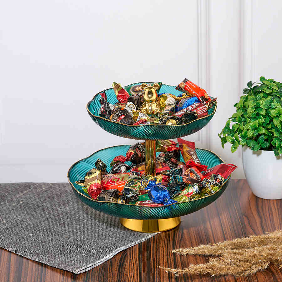 M-HS-4252 Фруктовница двухуровневая из стекла и металла с Мишкой 23,5х23,5х21,5 см