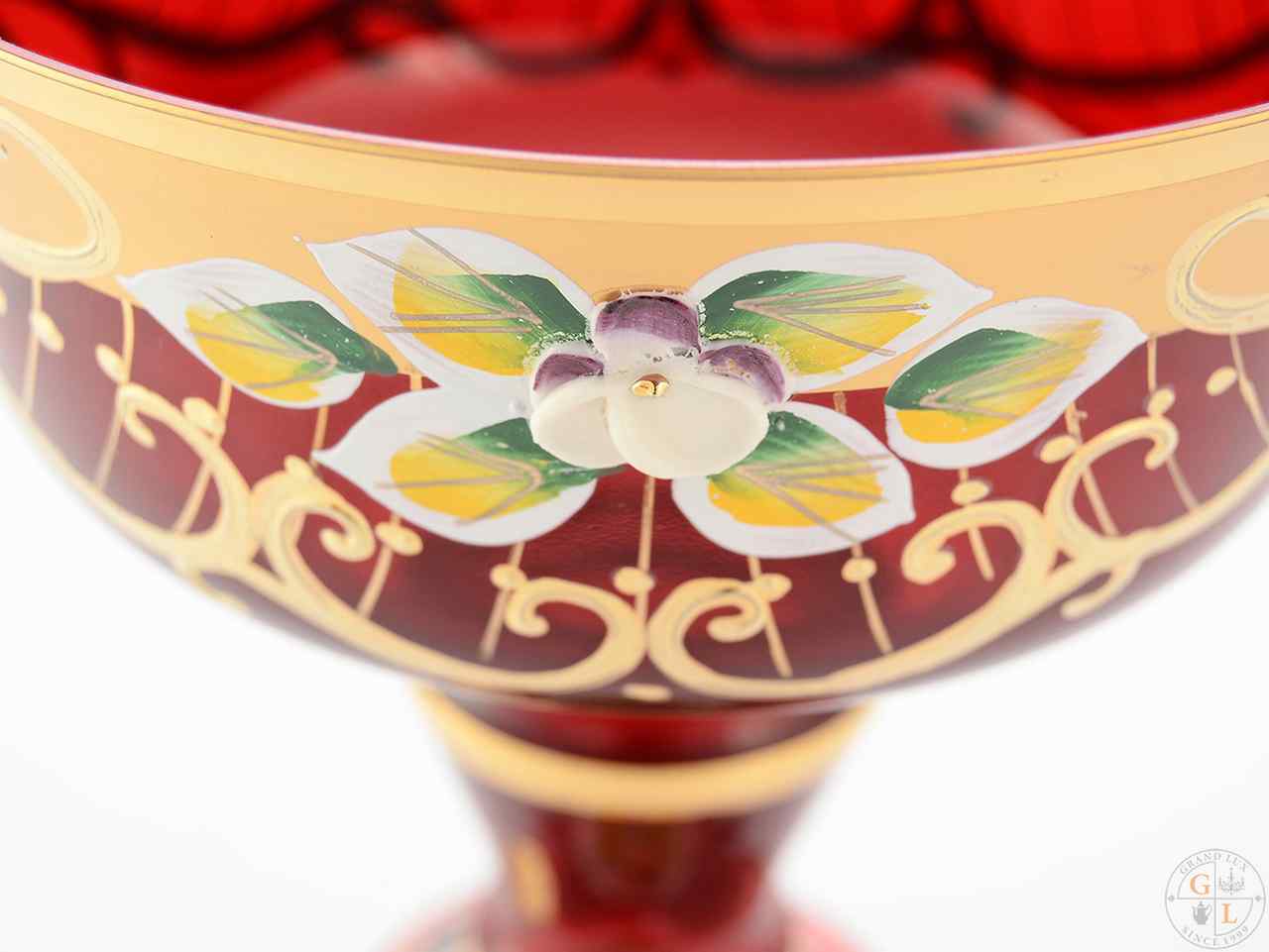 Конфетница на ножке 13см Лепка красная Bohemia Star Crystal 6444/13/ Чехия 37638