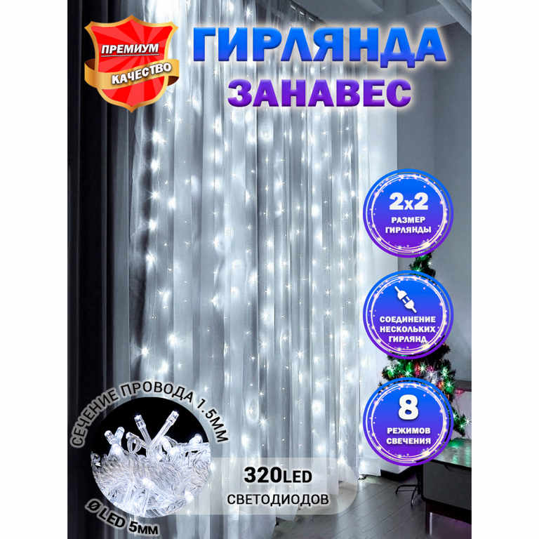 M-DL-10003 Электрогирлянда "Занавес", 320LED, прозрачный провод, 200*200 см